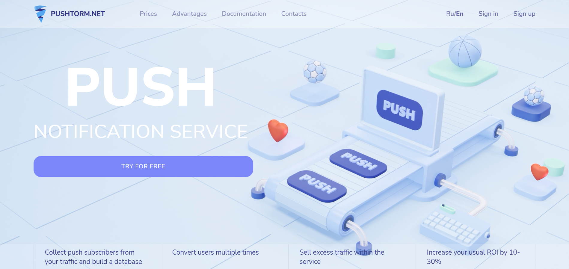 Pushtorm.net is a push notification service that allows you to both collect your own base v.2.1